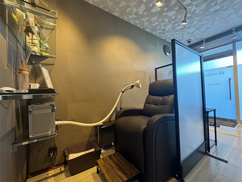 着替えの必要はございません。お気に入りの普段着のまま、ゆったりとした椅子に座っていただくだけです。お仕事帰りや、お出かけのついでに、カフェに立ち寄るような感覚で、贅沢な「深呼吸の時間」をお過ごしいただけます。